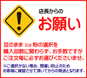 豆のままの場合も豆のままを選択項目でお選び願います。
