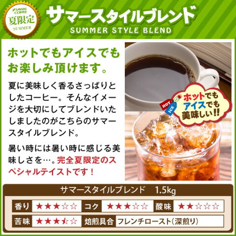 ・内容量 サマースタイルブレンド 500g×3袋 ・賞味期限 焙煎日より一年間。